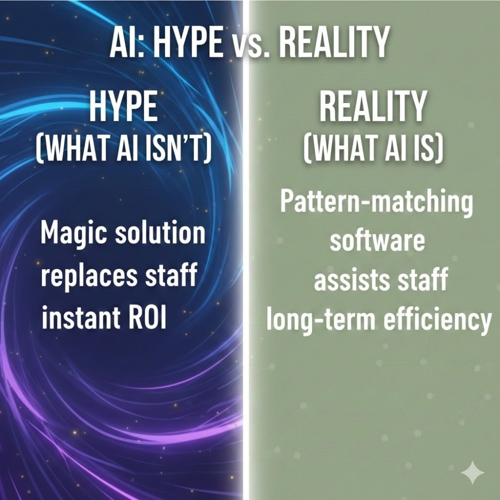 Here’s the thing about AI that nobody seems to want to say out loud: it’s not magic. It’s software that’s really good at spotting patterns and making predictions based on data it’s seen before. Think of it like a very keen employee who’s read every email your company has ever sent and can now draft similar ones – helpful, yes, but not going to revolutionise your entire business overnight.